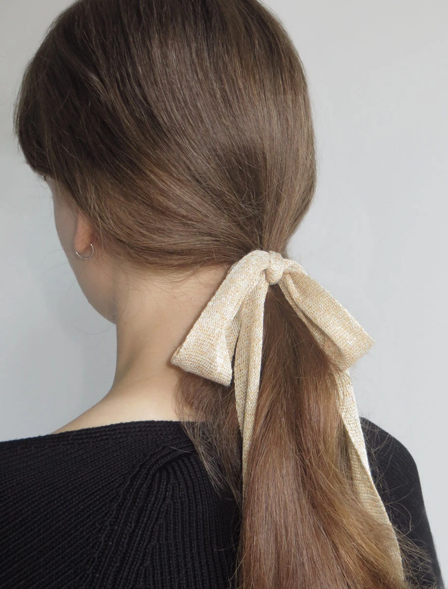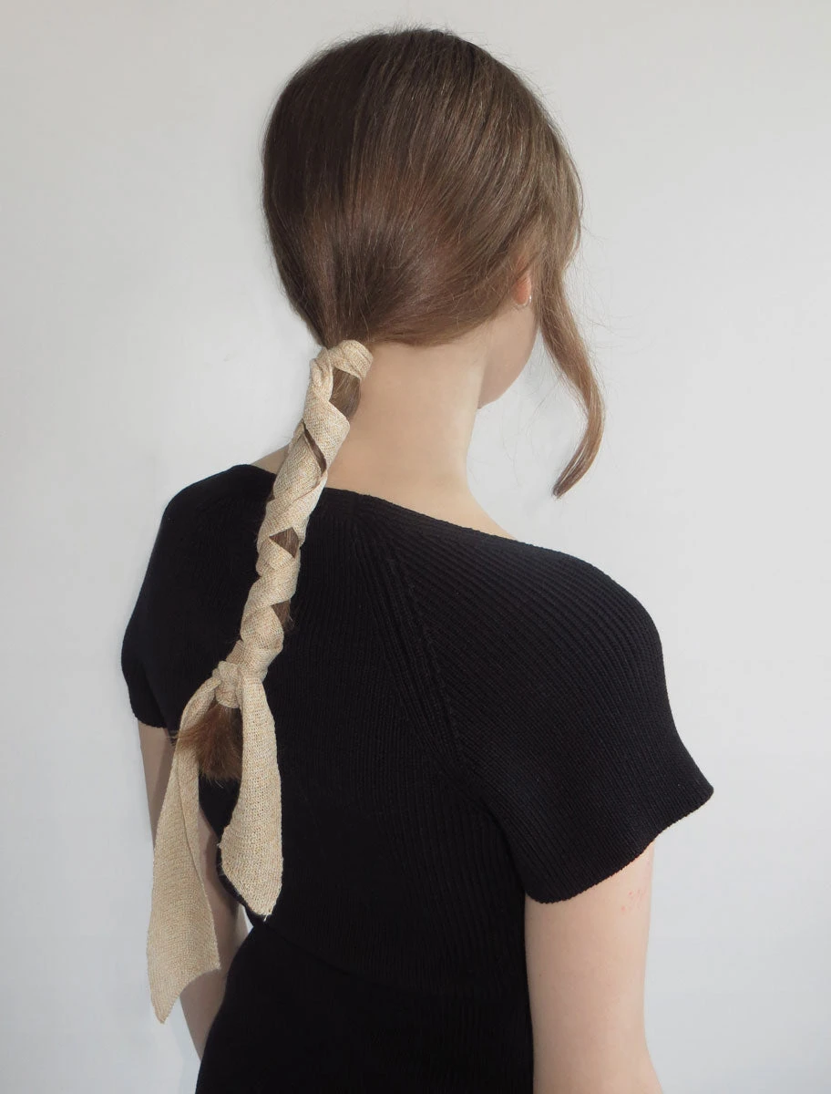 Open-knit hair and neck ribbon. Super delicate piece made from deadstock thread.