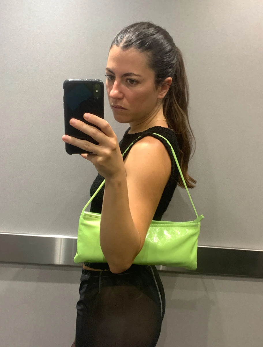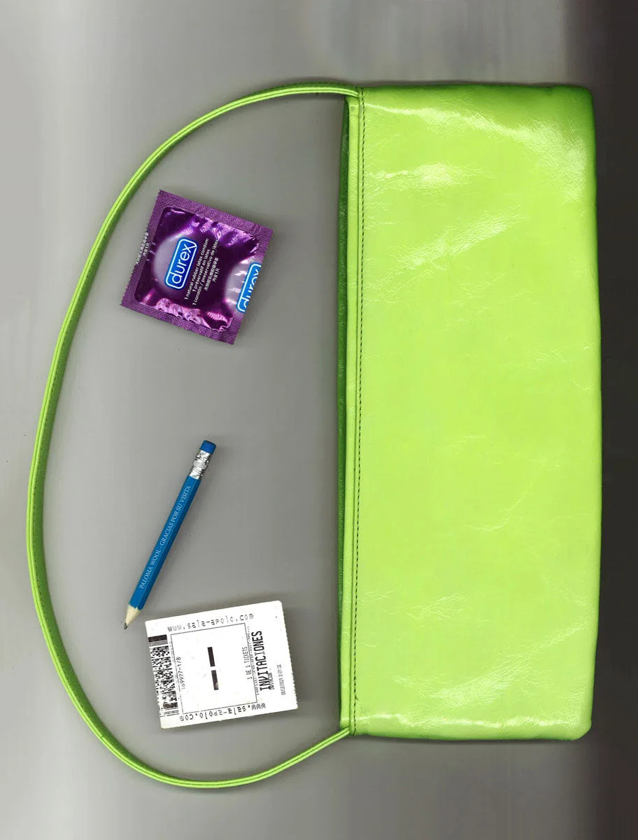 Baguette leather bag. Lined. Care: Clean with a dry or slightly damp cloth, then dry. Do not expose to nearby heat sources.