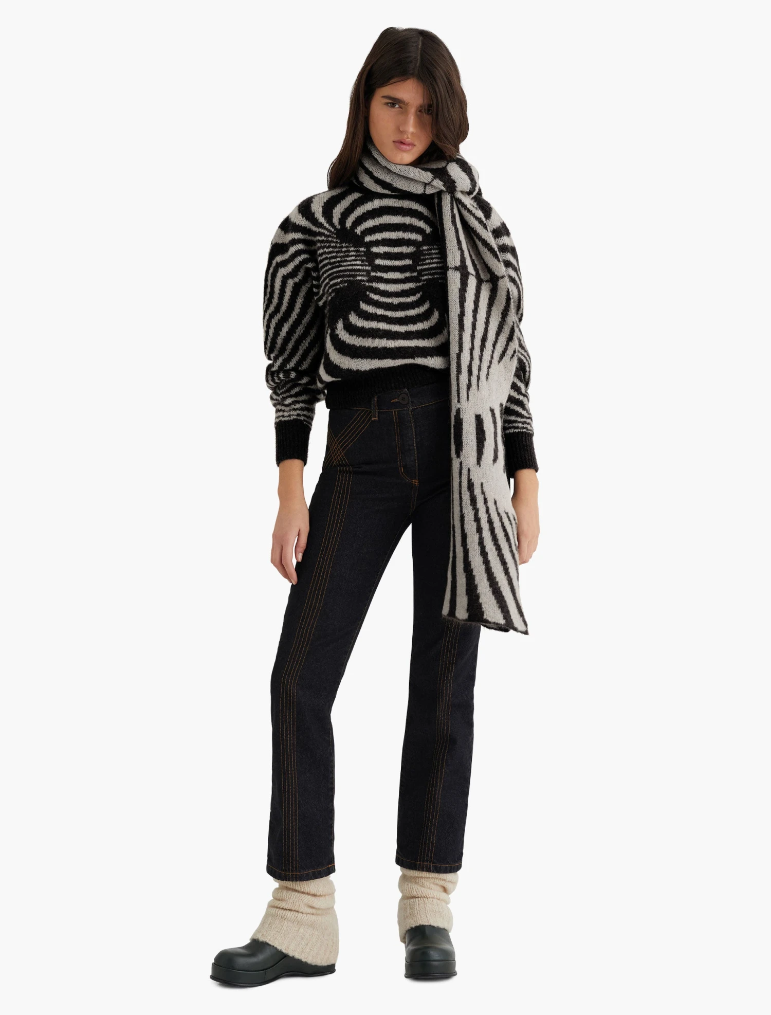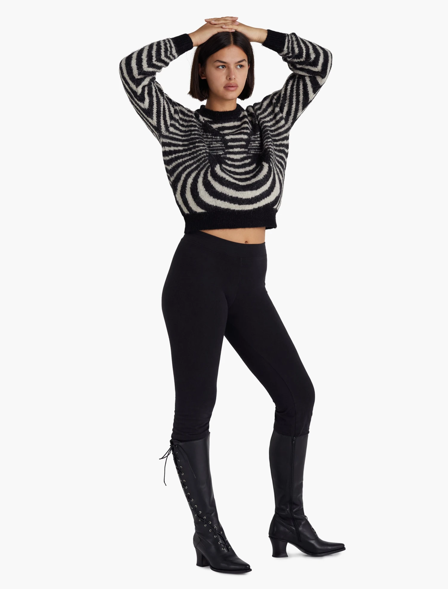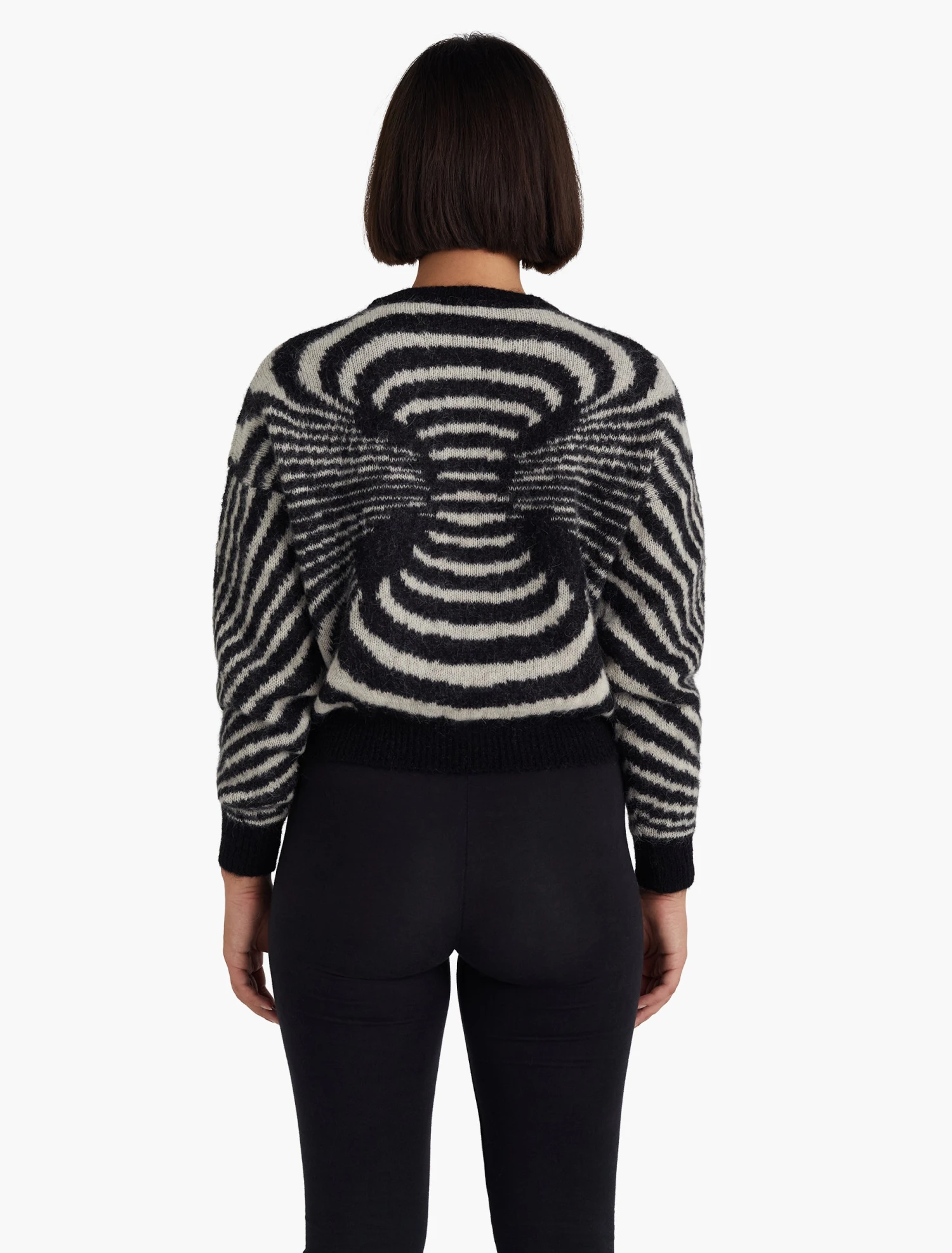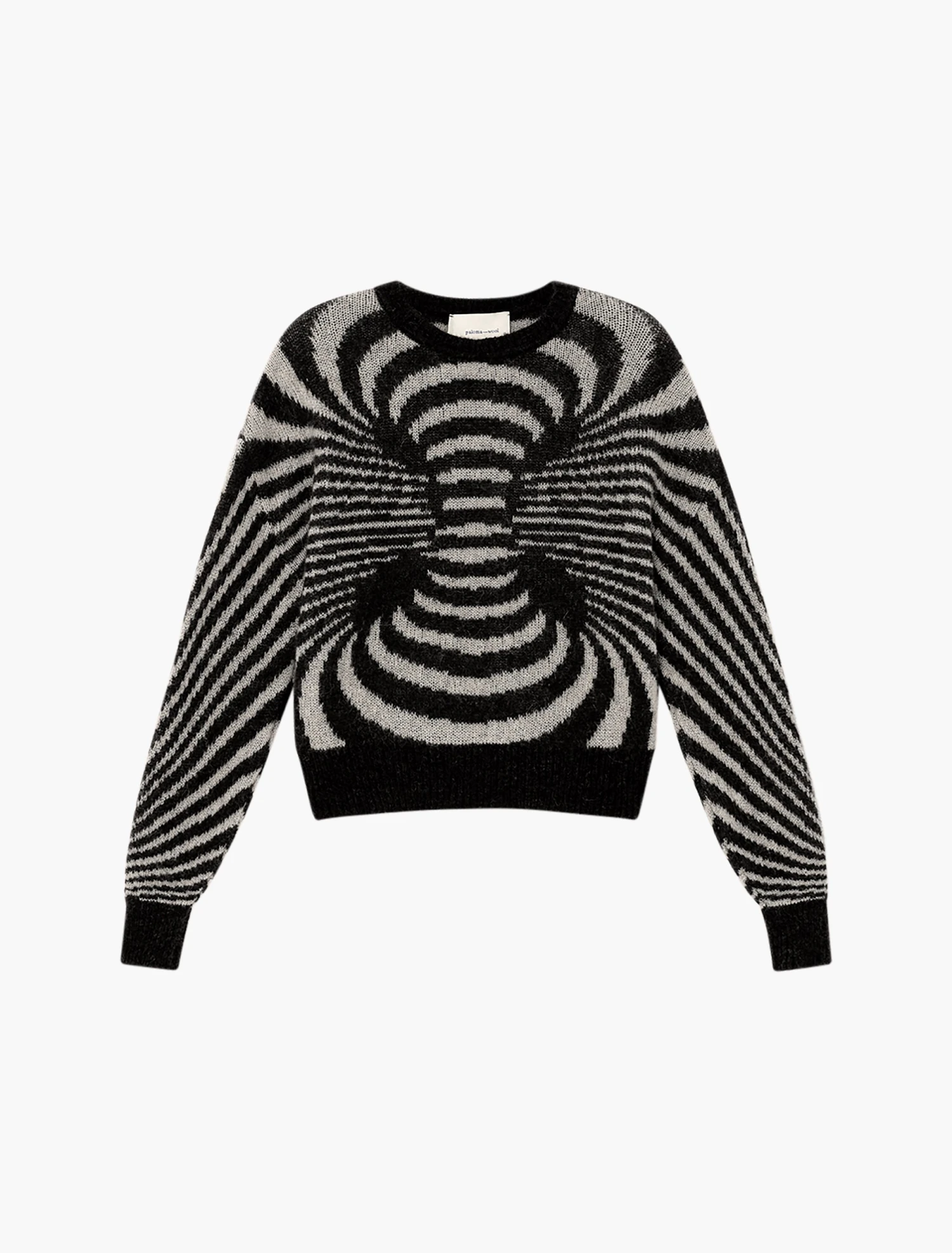 Warm and fuzzy infinite Op-art sweater. Available in 4 different color options. Color black.