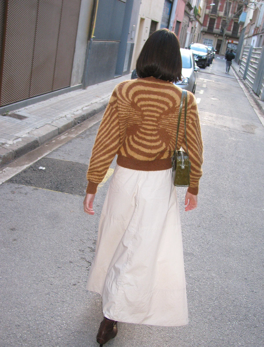 Warm and fuzzy infinite Op-art sweater. Available in 4 different color options. Color orange.