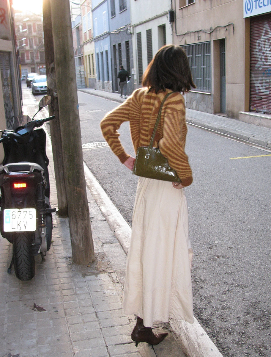 We recommend wearing long sleeved undershirts with this sweater if you have very sensitive skin as natural alpaca is super lightweight and warm but can prickle slightly.