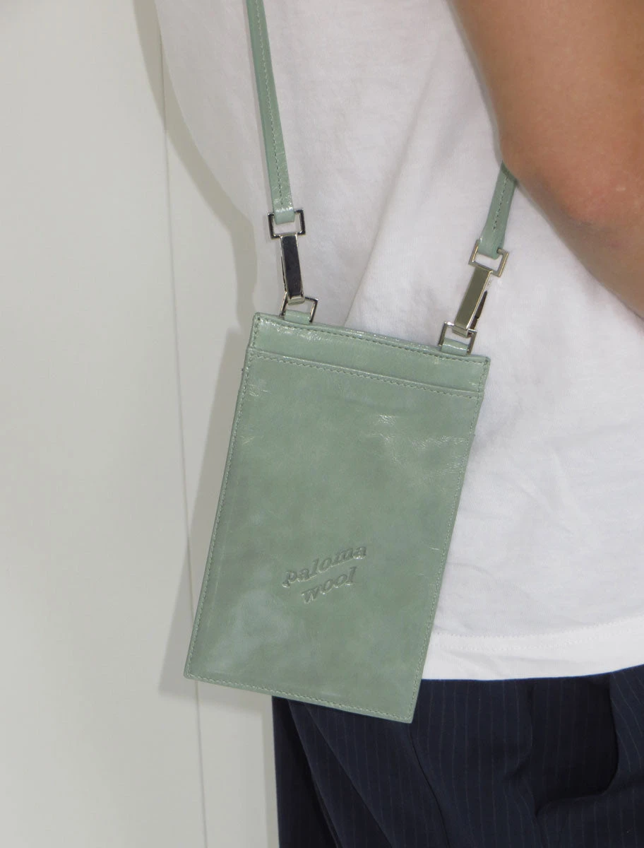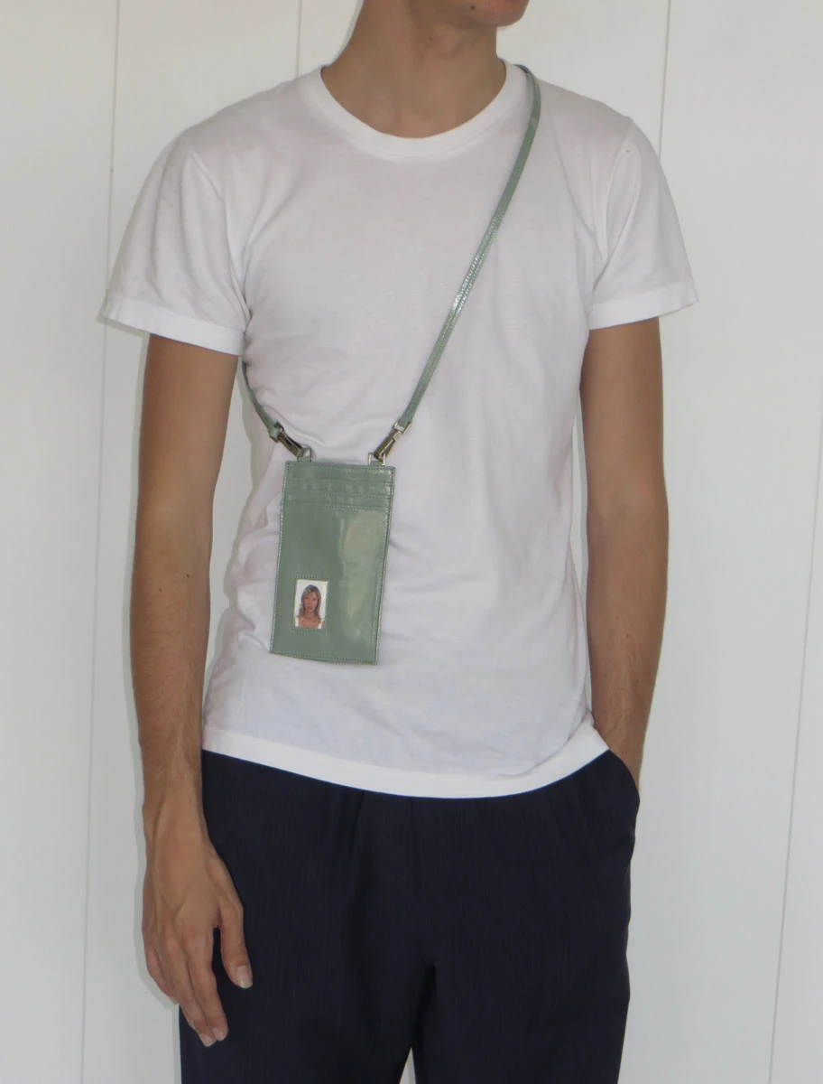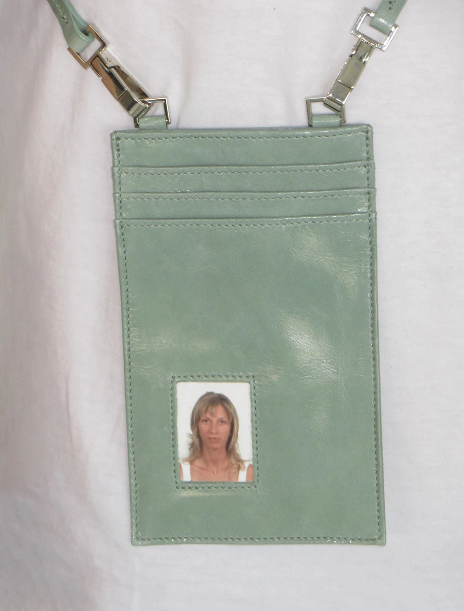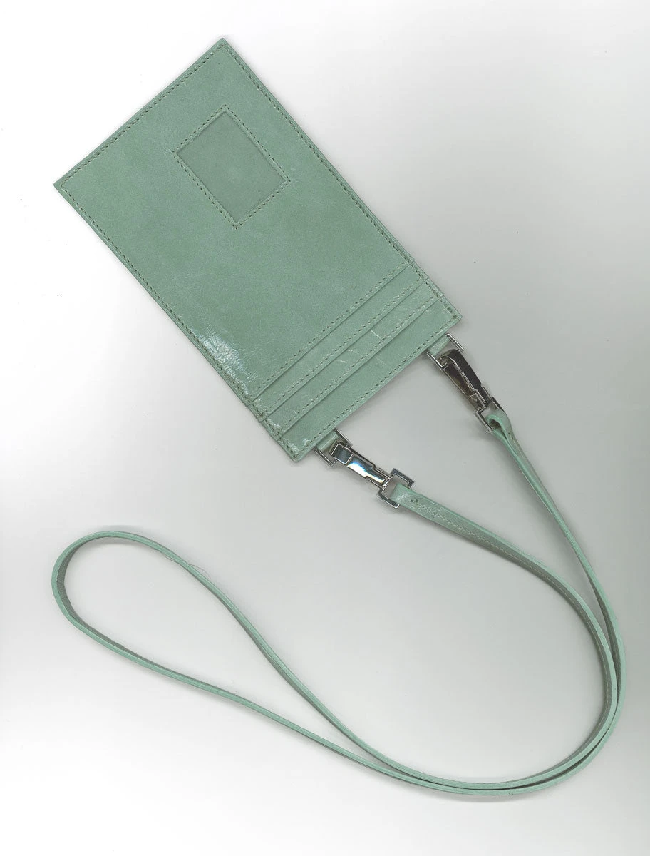 Card holder bag with space for the mobile. You can carry it hanging or you can remove the strip as a card holder. Space to put the photo of your favorite person. Color light green.